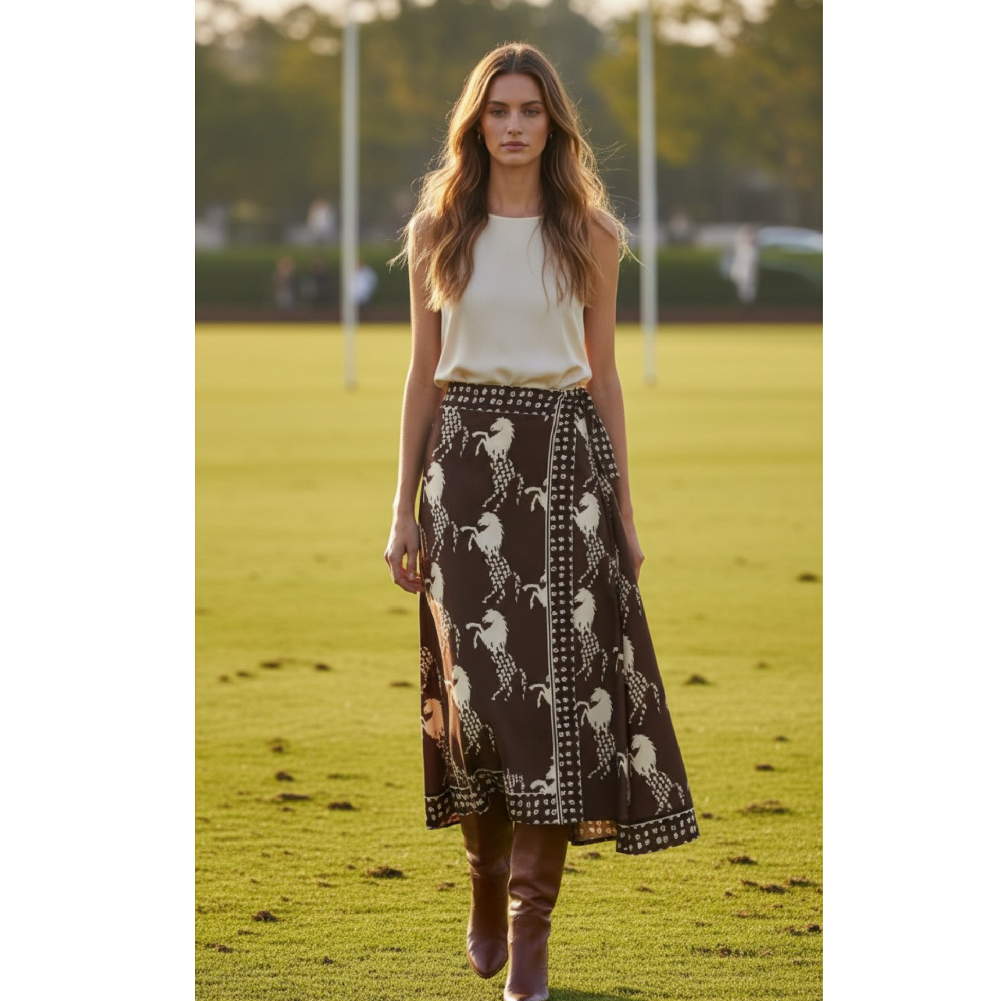 Falda café caballos